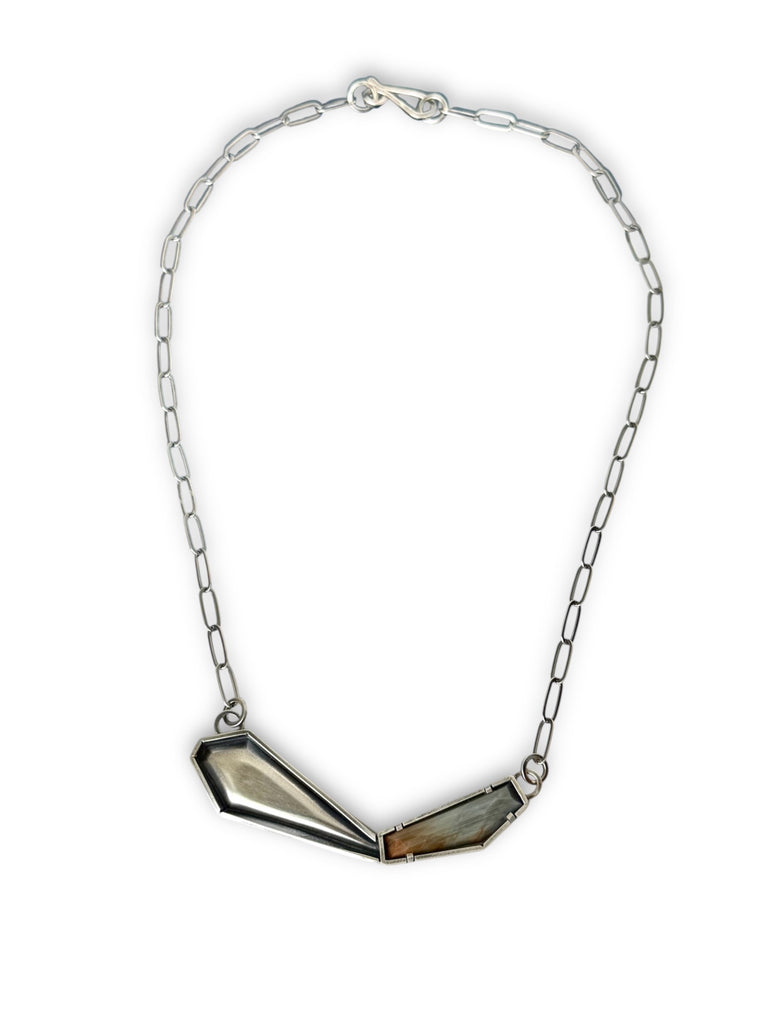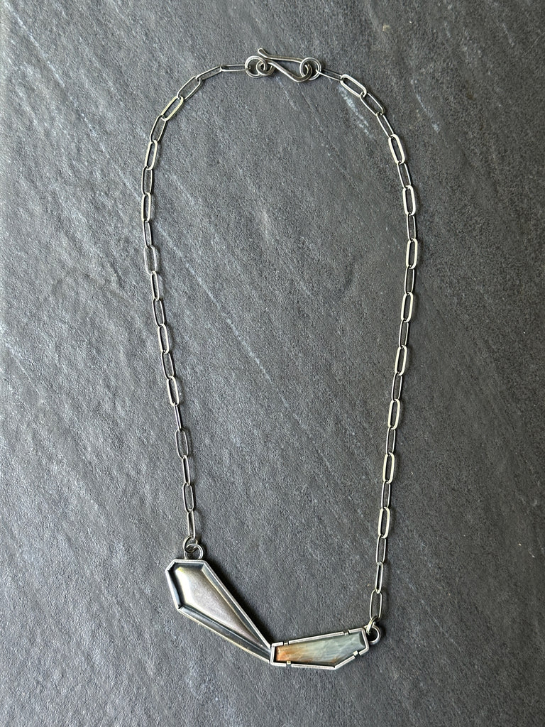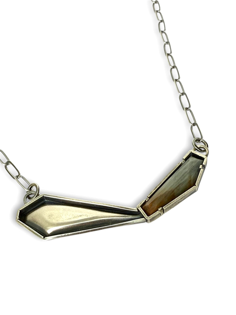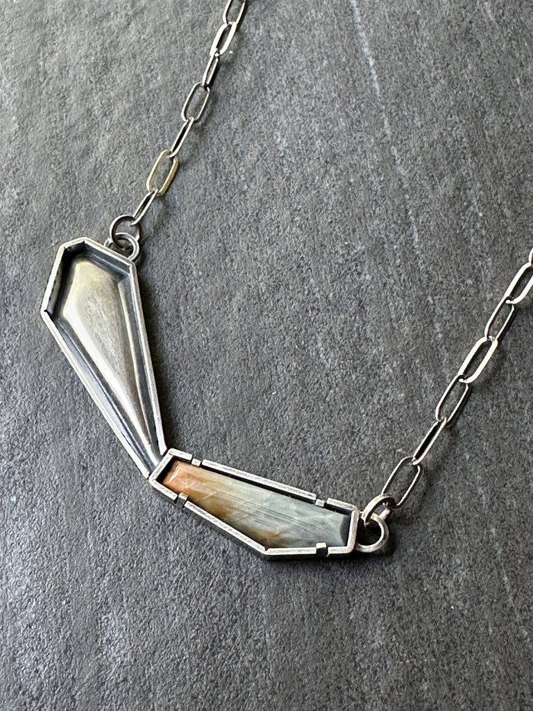 Oxidized sterling silver and Chatoyant Grey Quartz Necklace