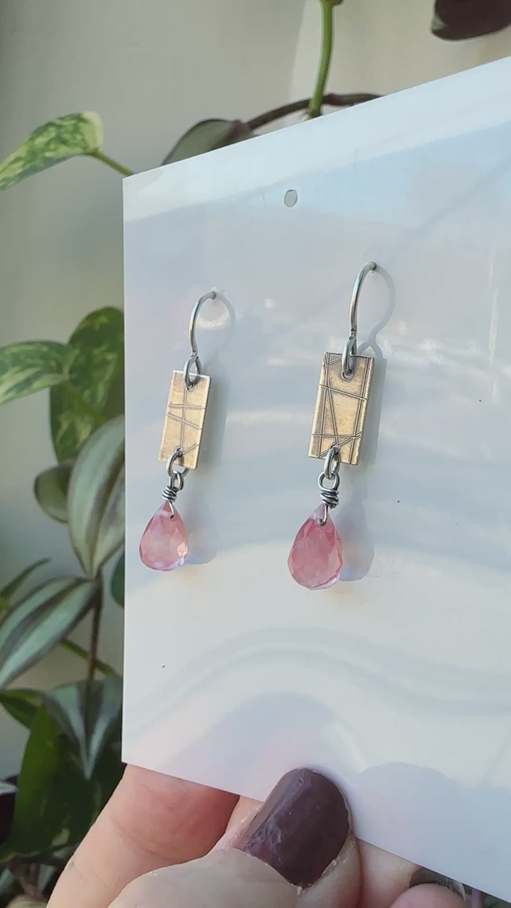 Strawberry Quartz and oxidized sterling silver earrings.