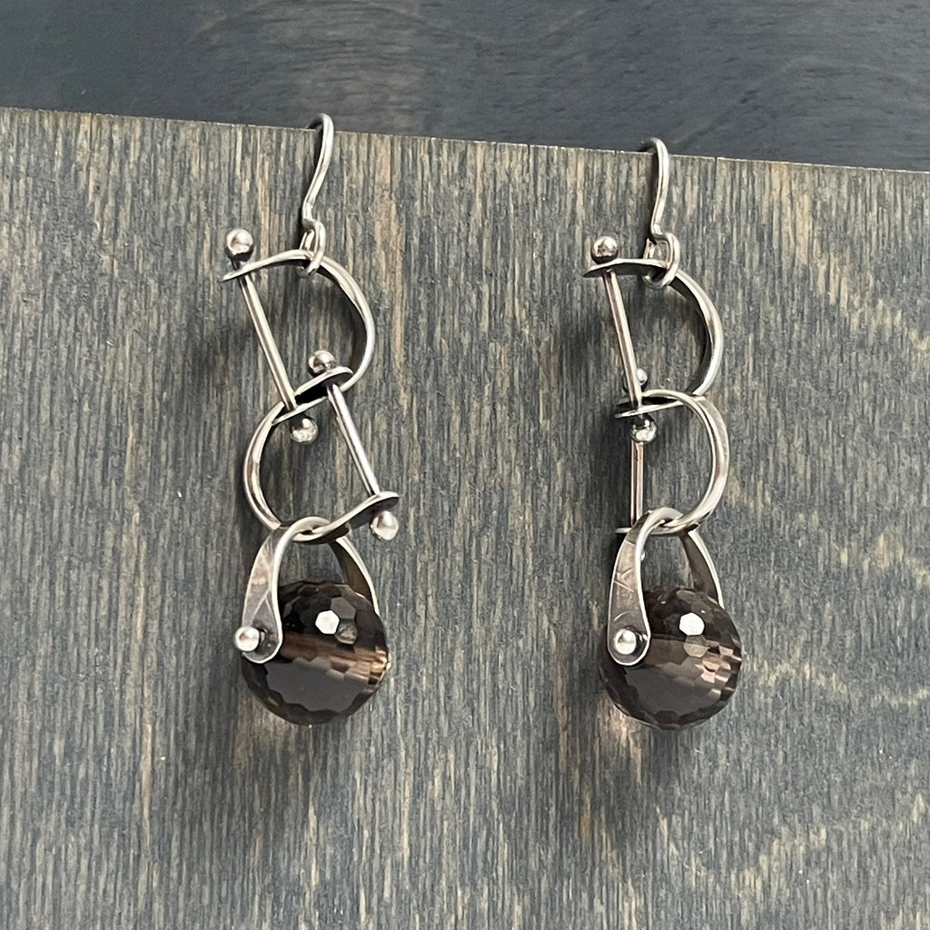 Hand-forged sterling silver earrings with faceted smoky topaz. I have been making these "bridle" links for years and I still love the playfulness that they bring.0.3 oz/pair 2" x .5"Signature Earrings by Erica Stankwytch Bailey