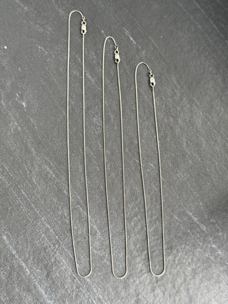 Oxidized Rounded Box Chains available in 16", 18" and 20" lengths.