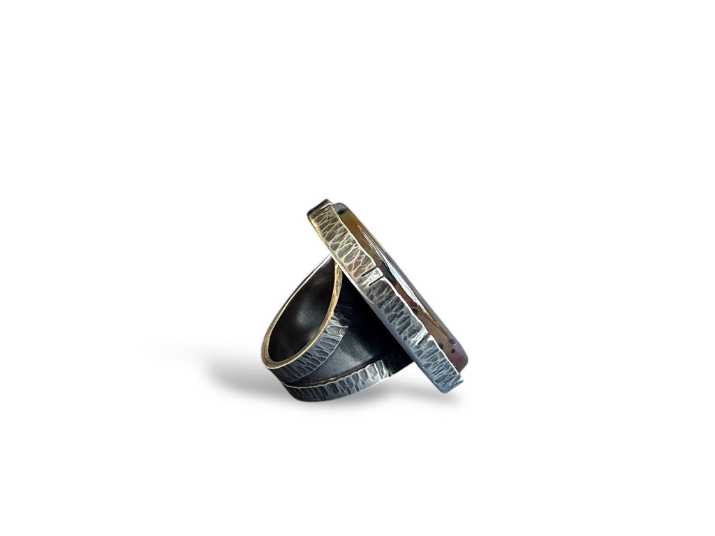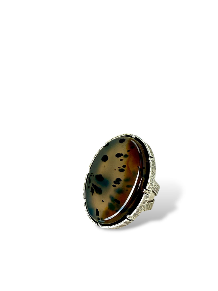 Oxidized sterling silver and Montana Agate RingThis Big/ Bada$$ ring has some serious presence!One of a KindSize 8Ring Face is 1.5" x 1.25"
