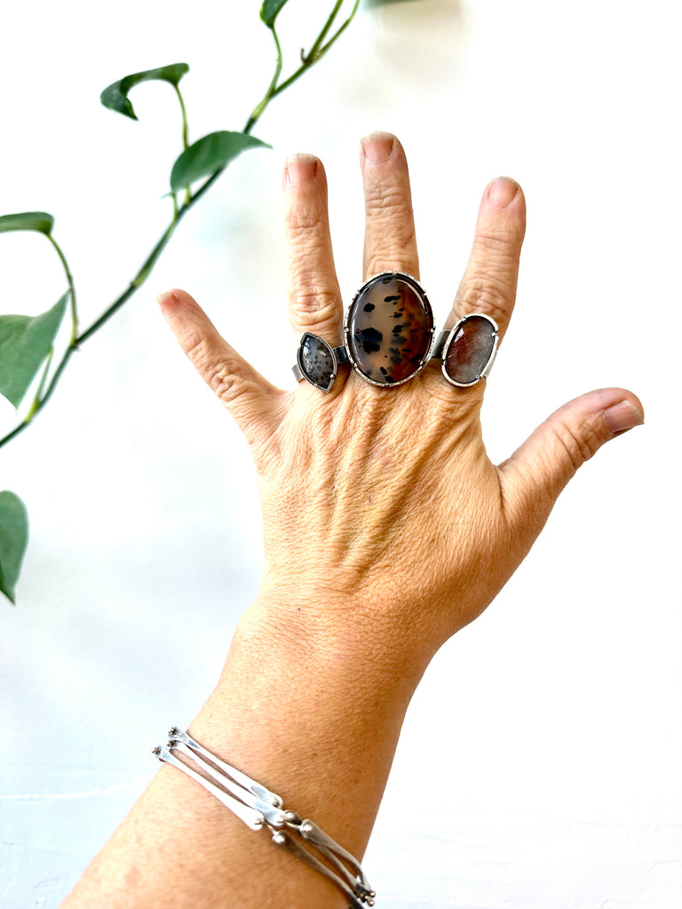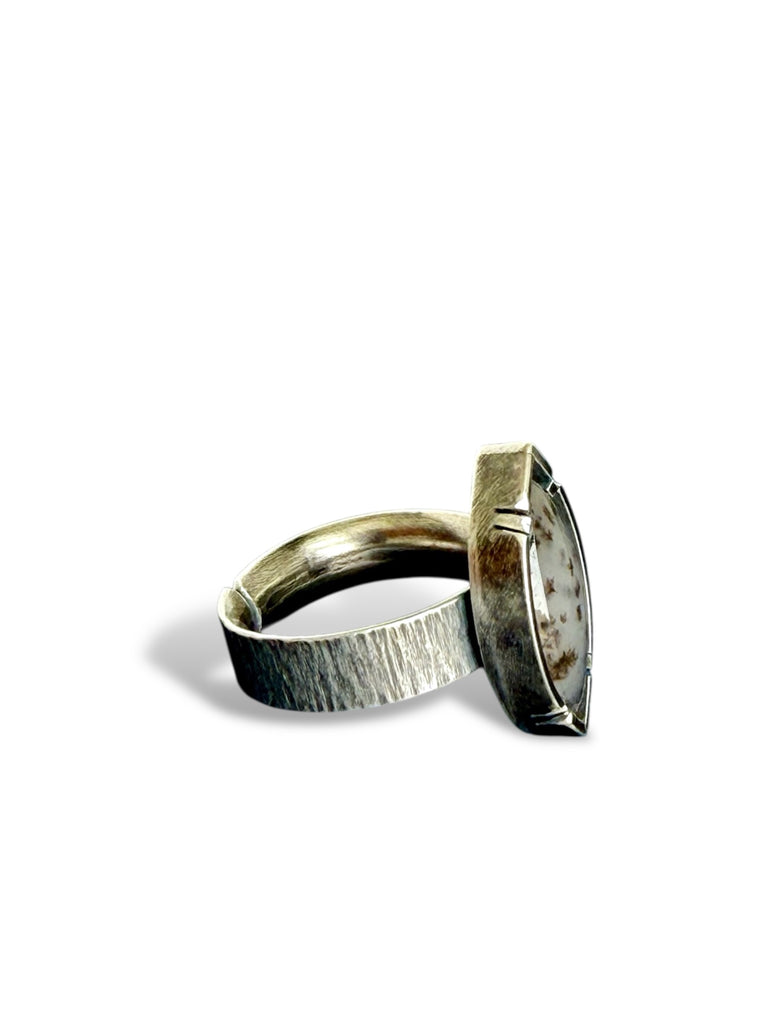 Oxidized sterling silver and Dentritic Quartz RingOne of a kindAdjustable size , please email Erica with desired size after purchaseRing Face is .8" x .5"