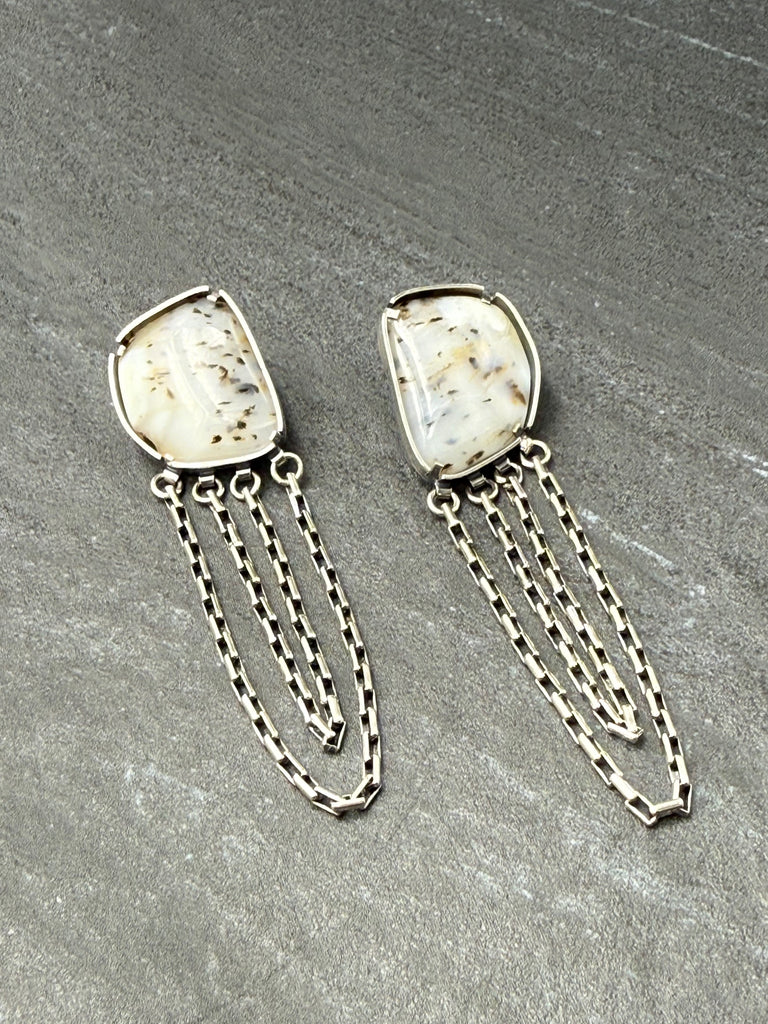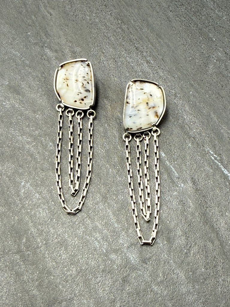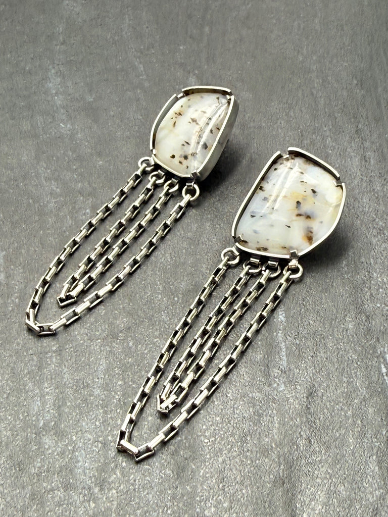 Montana Agate and Oxidized Sterling Silver EarringsThese earrings have such great movement.One of a kind3.0" x 0.75"Weight 0.5 oz/pair