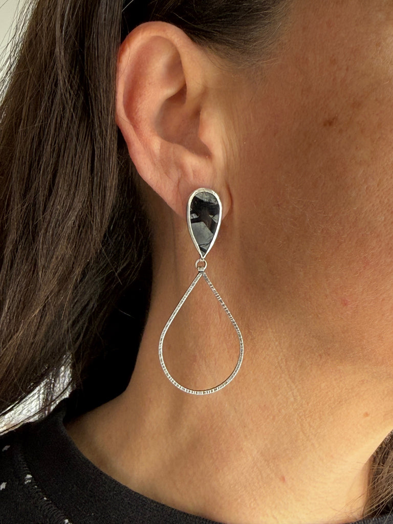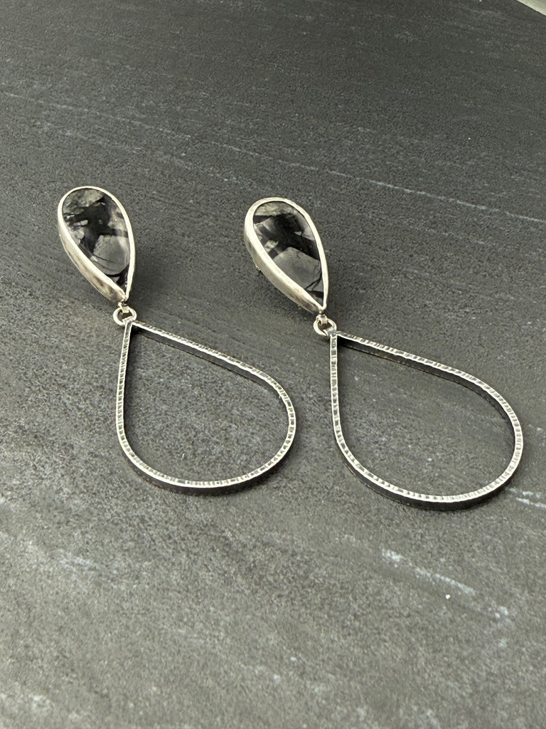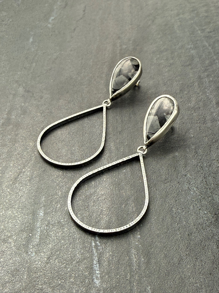 Jasper & oxidized sterling silver earrings