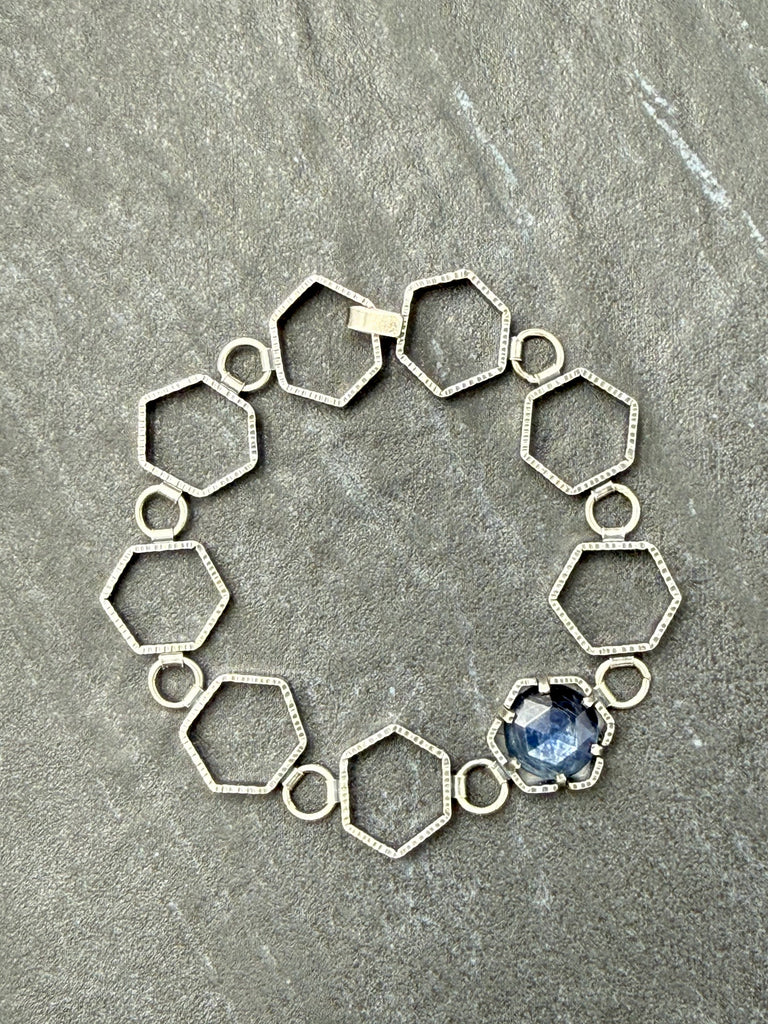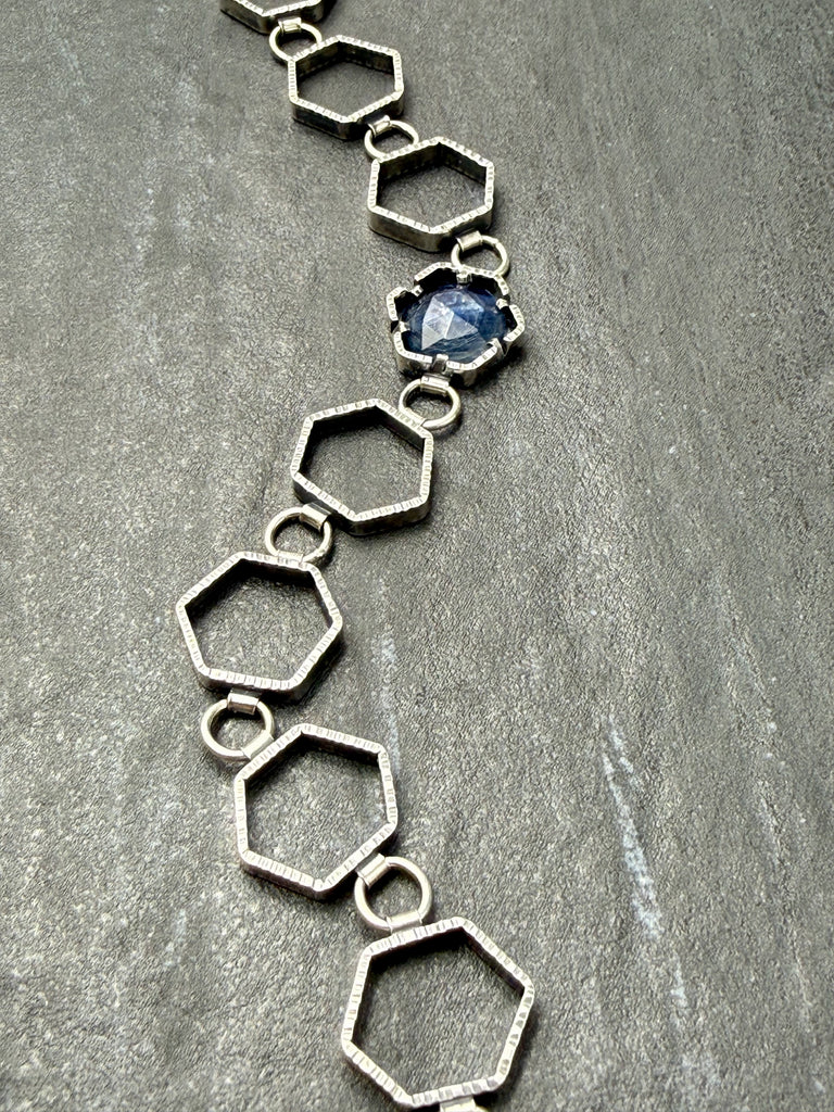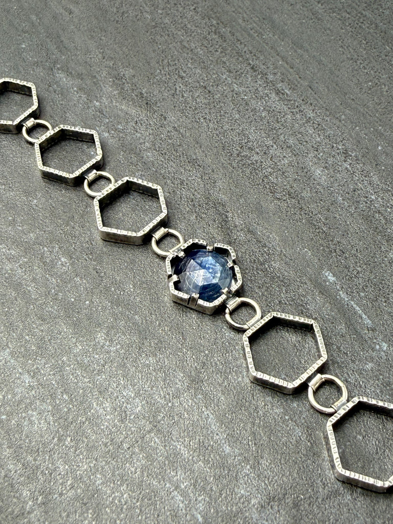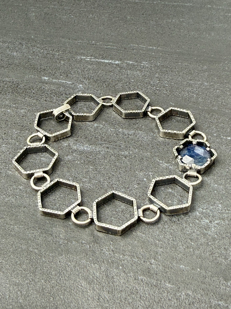Faceted Kyanite & Oxidized Sterling Silver Hexagonal links bracelet