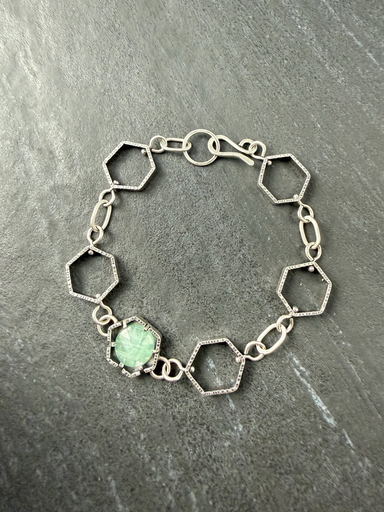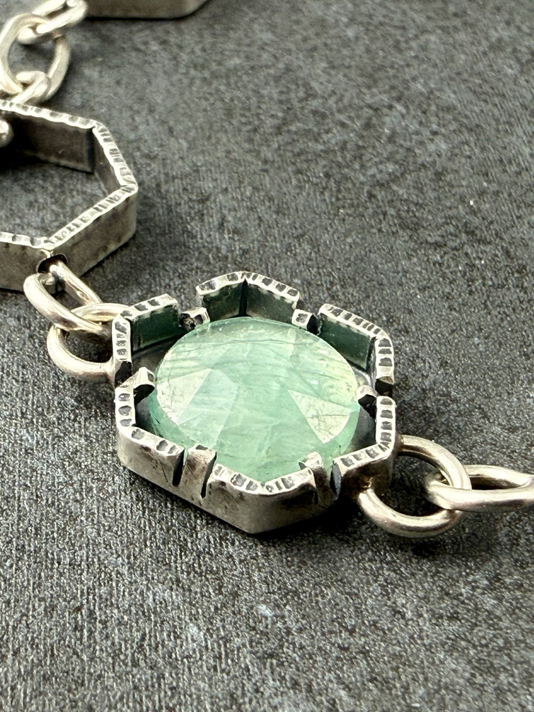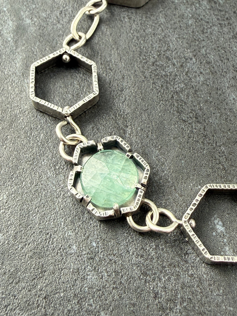 Faceted Kyanite & Oxidized Sterling Silver Hexagonal links bracelet