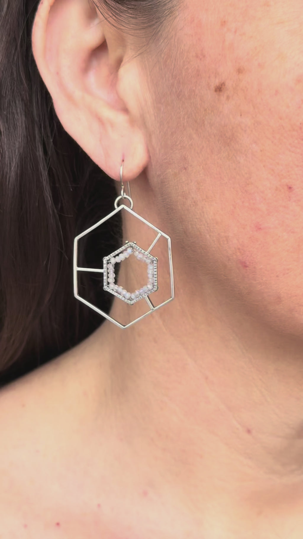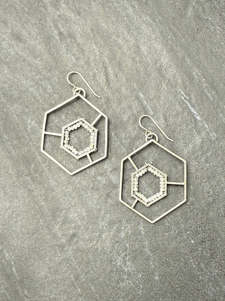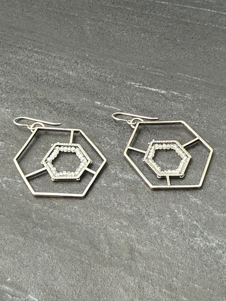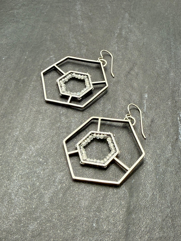 Rainbow Moonstone GEODE/Framed Earrings II