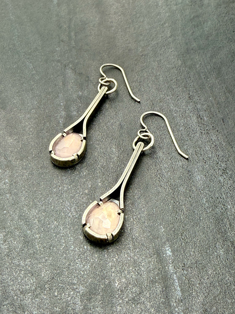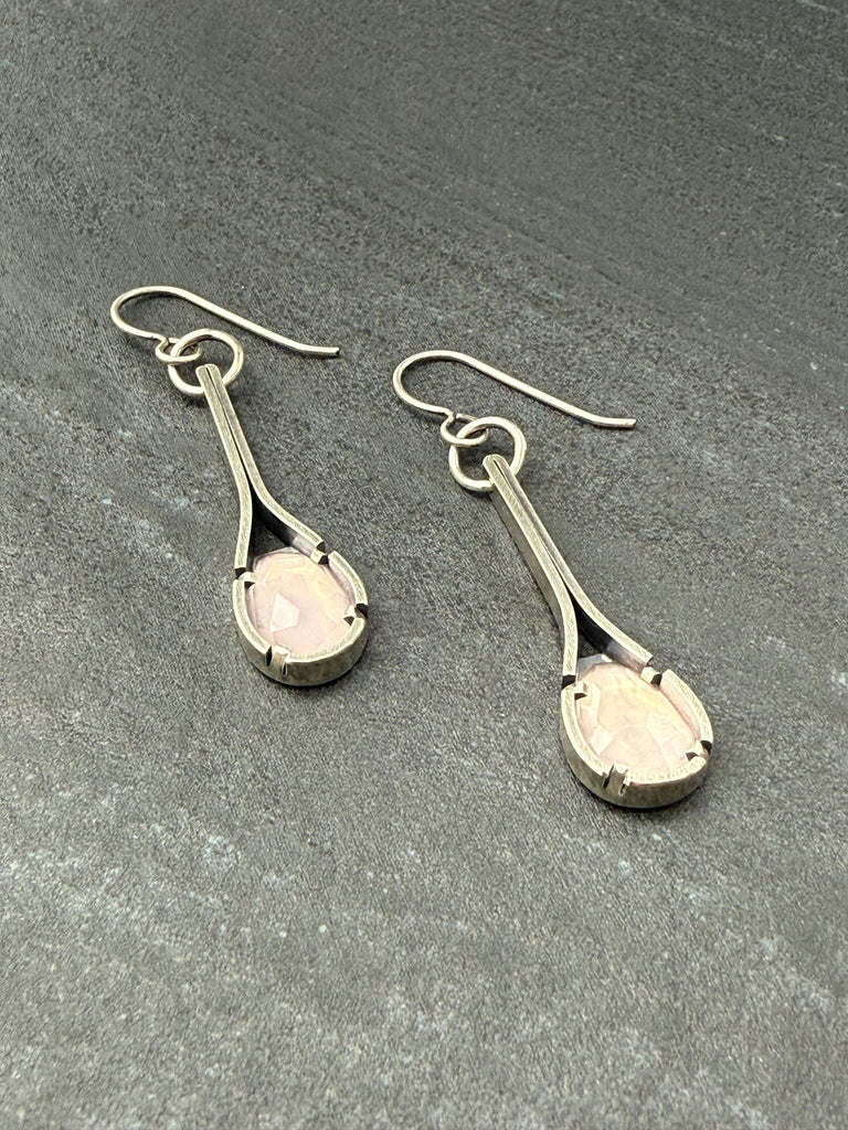 Faceted Rose Quartz & oxidized sterling silver earrings