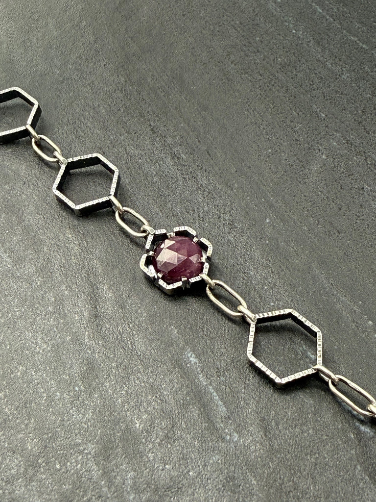 Faceted Ruby & oxidized sterling silver bracelet