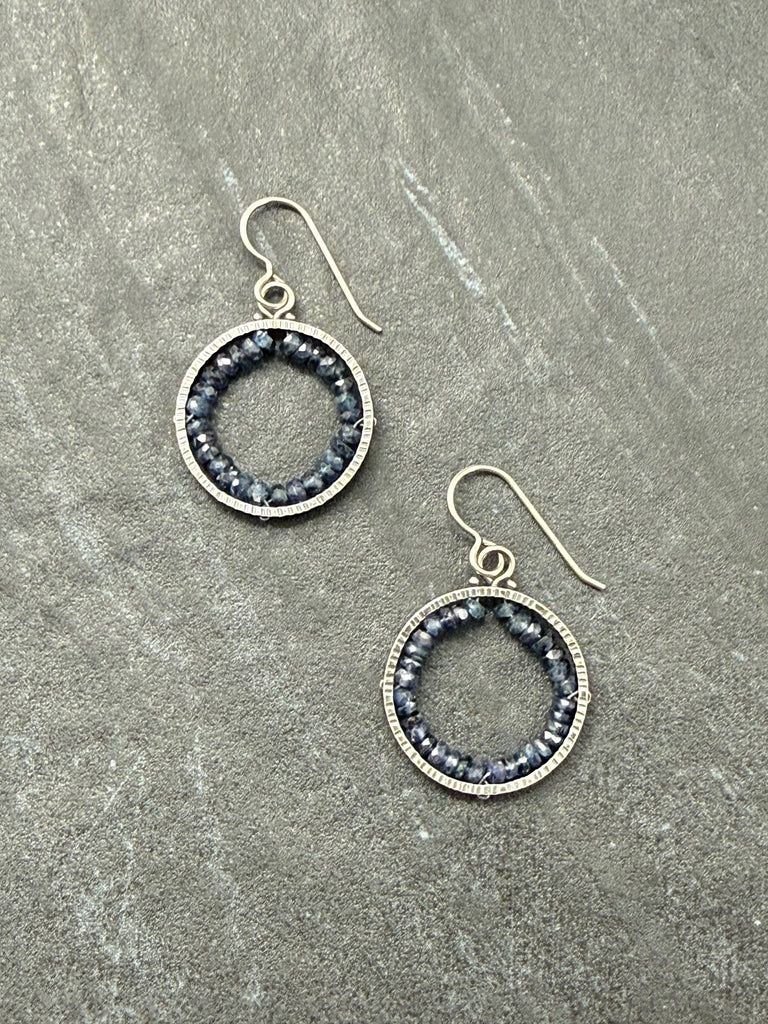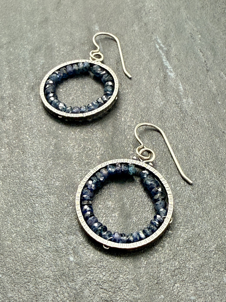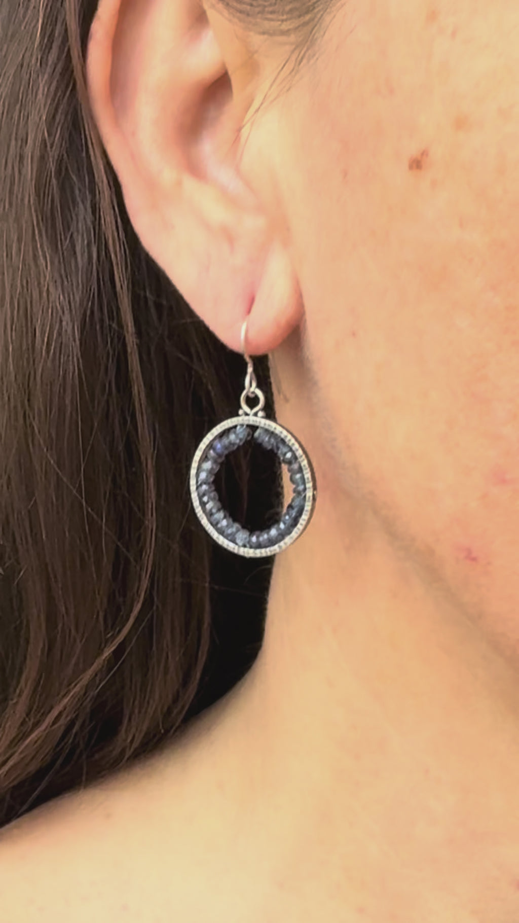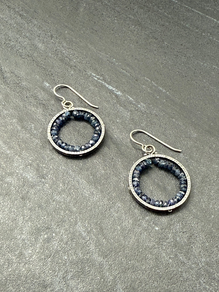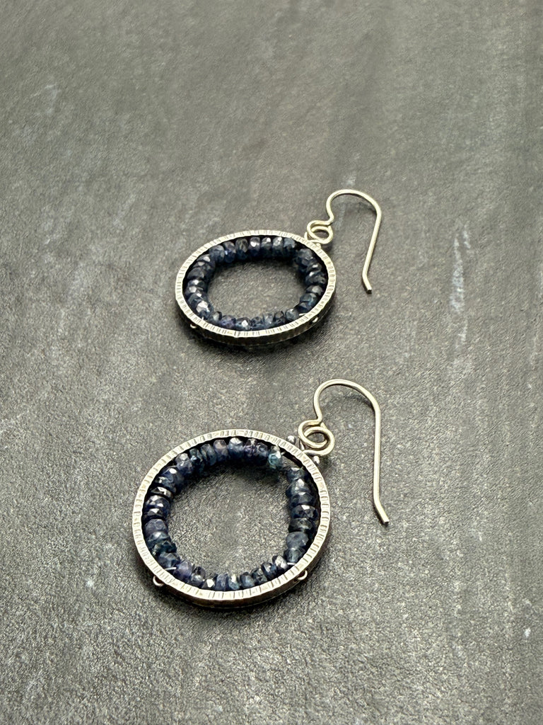 Faceted Blue Sapphire & oxidized sterling silver earrings
