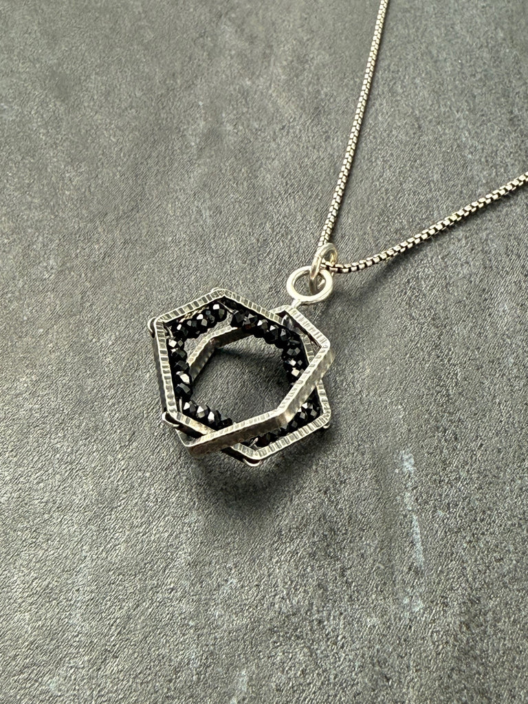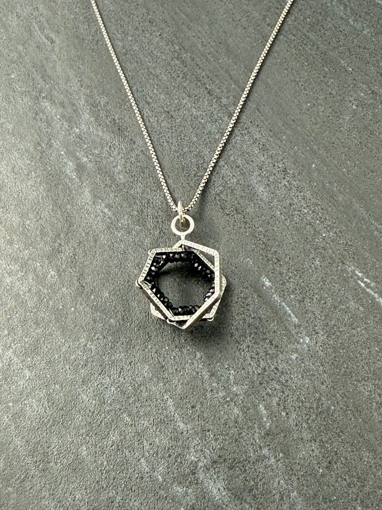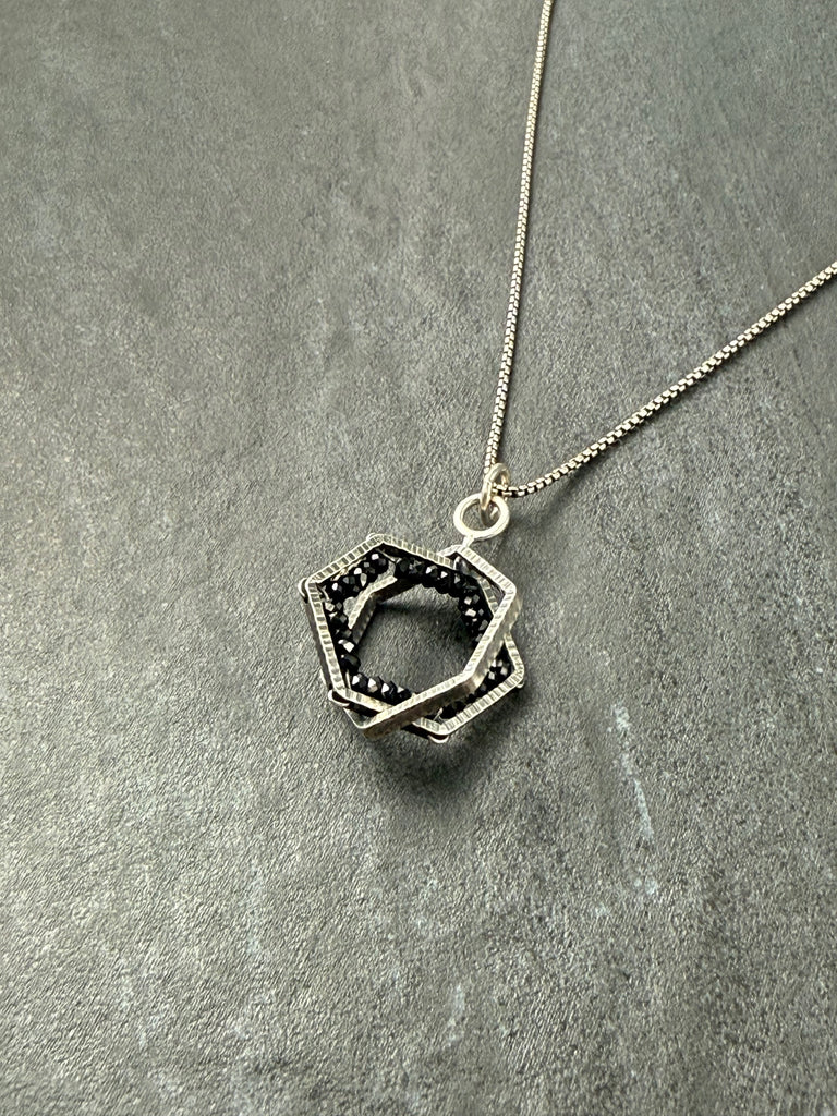 Spinel & oxidized sterling silver pendant