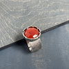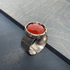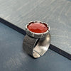 Handmade ring in Oxidized Sterling Silver and Carnelian, with a clean and minimalist setting and wide comfort--fit band.