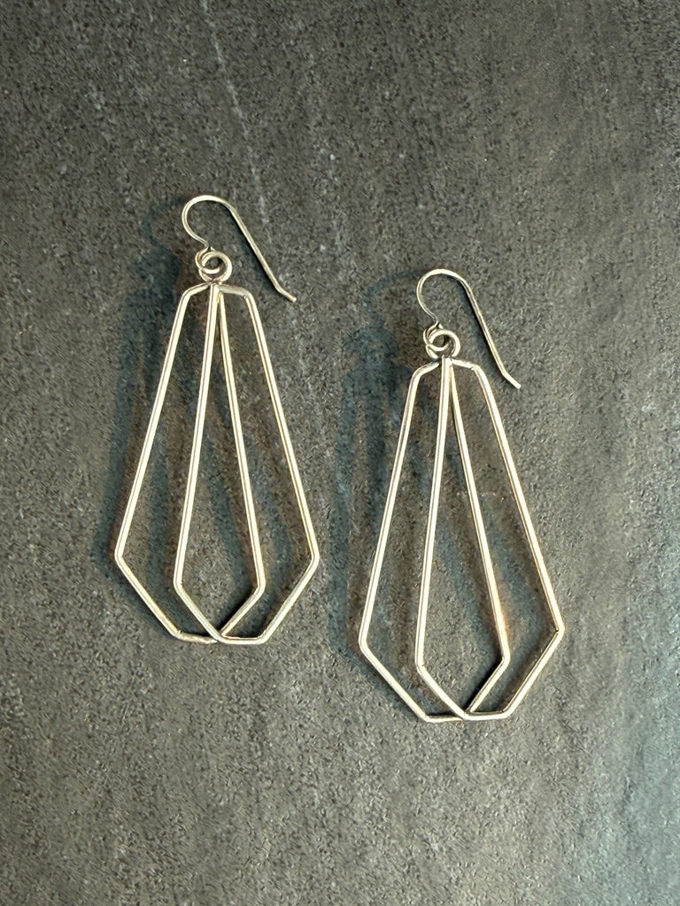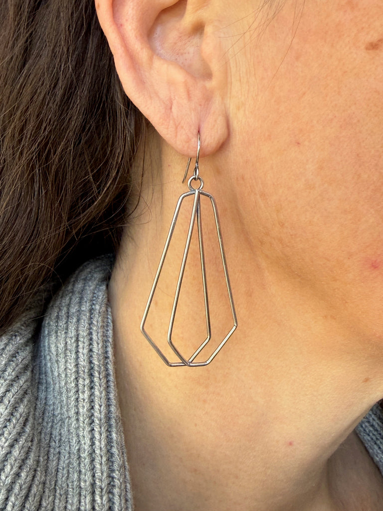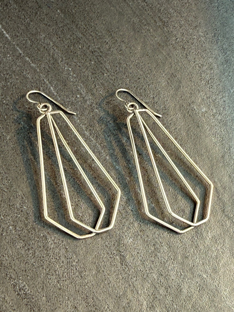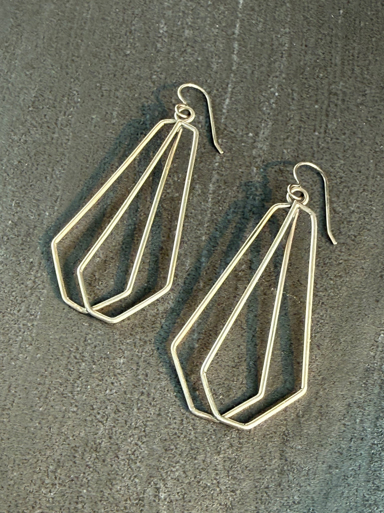 Make a statement with these geometric hammer textured polygon earrings. Their unique design is sure to catch the eye and add an edgy touch to any outfit. Upgrade your accessory game and stand out from the crowd with these one-of-a-kind earrings.