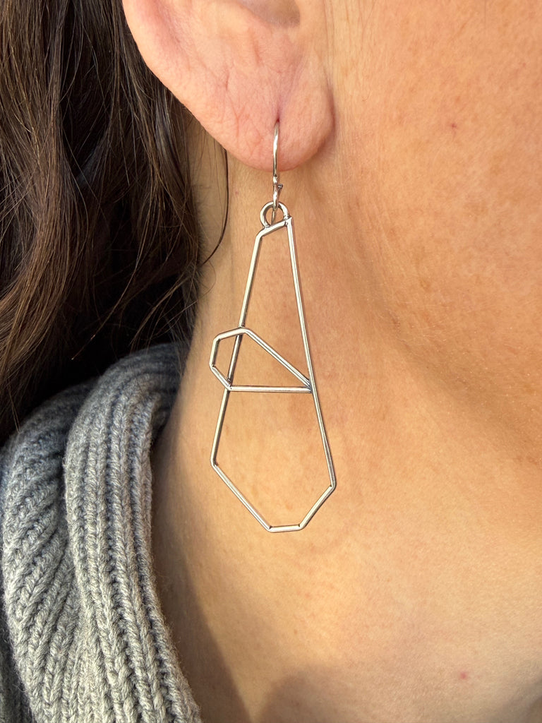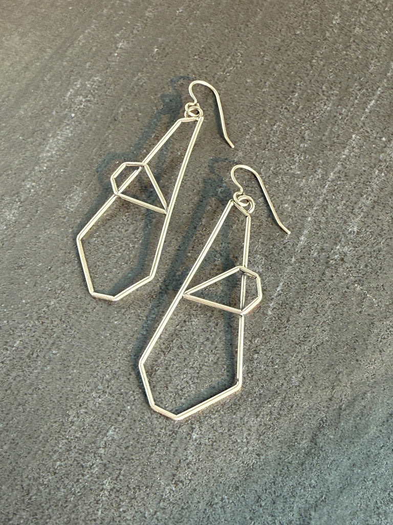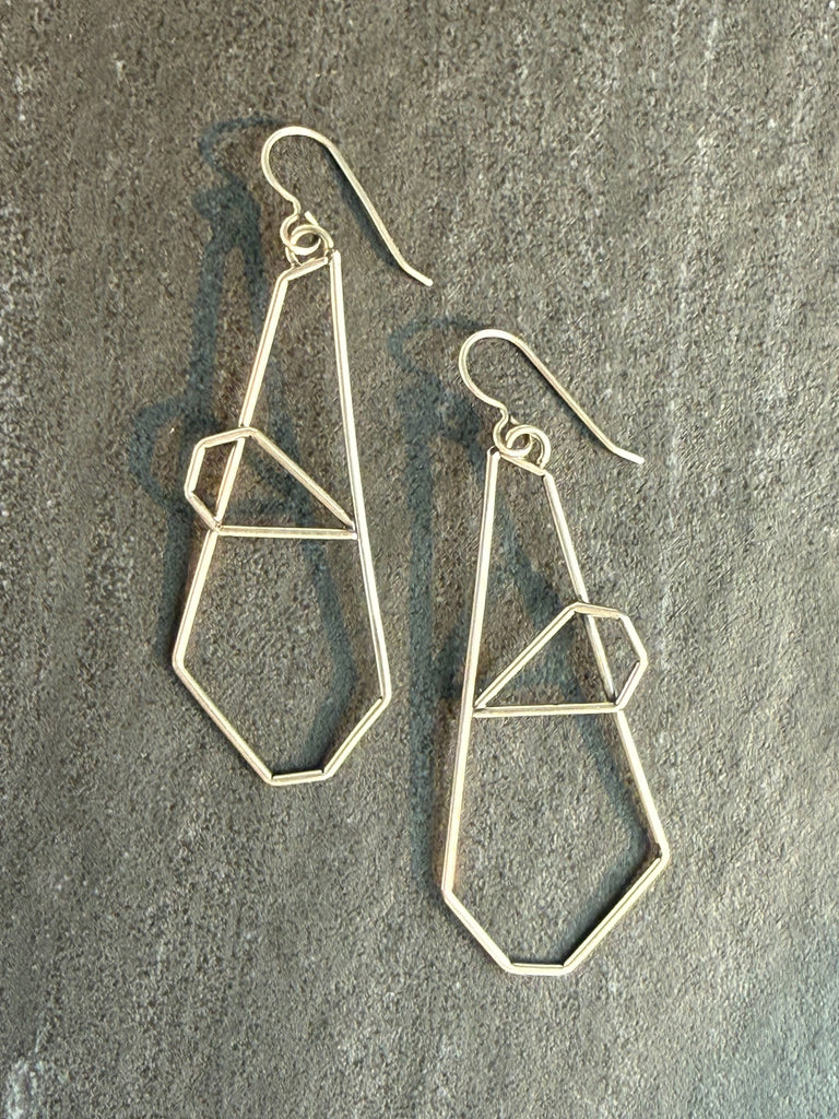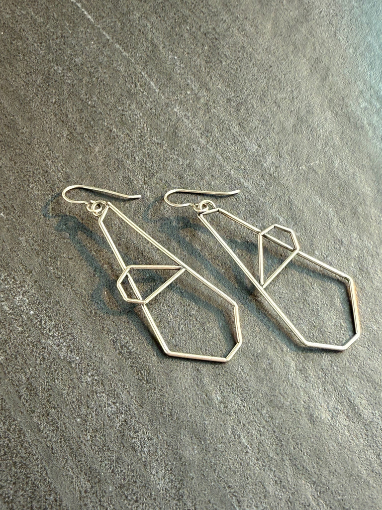 Make a statement with these geometric hammer textured polygon earrings. Their unique design is sure to catch the eye and add an edgy touch to any outfit. Upgrade your accessory game and stand out from the crowd with these one-of-a-kind earrings.